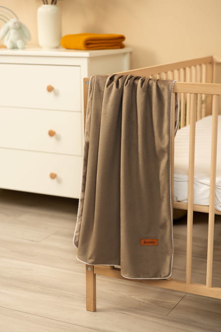 Koc Velvet je ľahká deka vyrobená z dvoch vrstiev látky Velvet. Je veľmi mäkká a príjemná na dotyk, zároveň ľahko udržiavateľná. Skvele poslúži počas prechádzok v teplé slnečné dni, môžete ju použiť ako: hrubšiu zavinovačku, podložku na každodenné hranie, plážovú deku alebo ochranu pri dojčení. Ďalšou výhodou sú estetické vlastnosti deky — krásna textúra látky a ozdobné lemovanie stužkou.