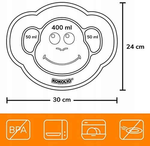 - Jedenie bez neporiadku: miska/tanier Kokolio pre bábätká, podložka pod tanier zabezpečuje kulinársky zážitok. Podložka sa pripevní k stolu a je takmer nemožné ju odstrániť detskými rúčkami.