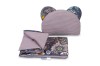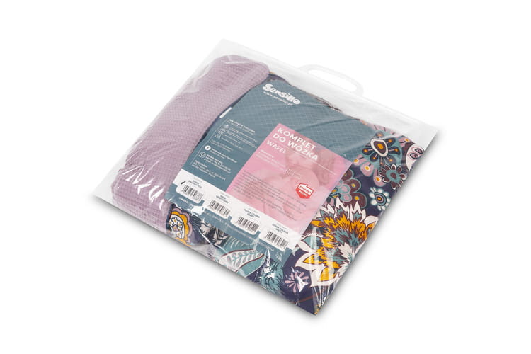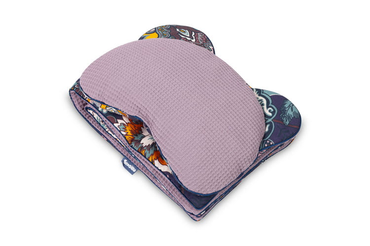 Komplet do kočíka Wafel pozostáva z vankúša (36x28 cm) a deky (56x76 cm). Vďaka týmto rozmerom je komplet ideálny do kočíka, postieľky alebo ako mäkká podložka pre bábätko. Vo vnútri sa nachádza antialergická výplň, ktorá zabezpečuje správnu izoláciu pred chladom. Samotný vankúš môže slúžiť ako maznáčik. Sada je vyrobená zo 100% bavlny – z jednej strany je potlač, z druhej mäkká bavlna so štruktúrou vafle, ktorá dodáva celému setu jedinečný vzhľad.