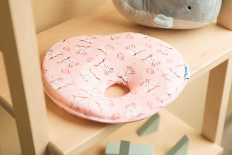 Ergonomický vankúš podporujúci správne formovanie hlavičky dieťaťa. Vďaka špeciálnemu tvarovaniu a nedeformujúcej sa výplni z peny znižuje bodový tlak hlavičky dieťaťa na podložku. Pomáha hlavičke bábätka získať prirodzený, okrúhly tvar. Vyrobený z príjemnej farebnej látky na dotyk.