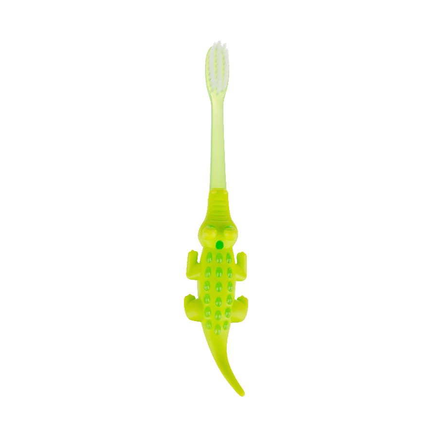 Zubná kefka je určená na každodennú hygienu ústnej dutiny, vhodná aj na masáž ďasien pre deti, ktoré ešte nemajú svoje zúbky. Hlavica je vyrobená z mäkkých a jemných štetín. Zaujímavá rukoväť v tvare krokodíla určite povzbudí dieťa k častému čisteniu zubov. Pravidelným používaním vytvárame správny návyk čistenia zubov už u najmenších detí, aby si čo najskôr zvykli na ústnu hygienu.