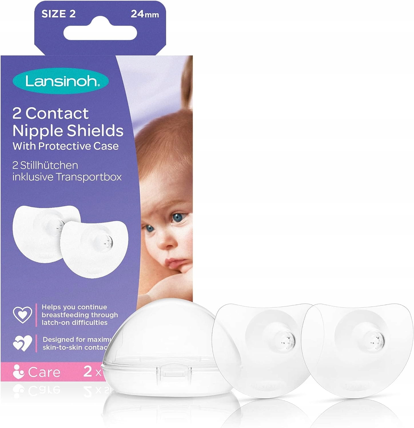 - Veľký (24 mm) chránič na bradavky s hygienickým a pohodlným puzdrom.