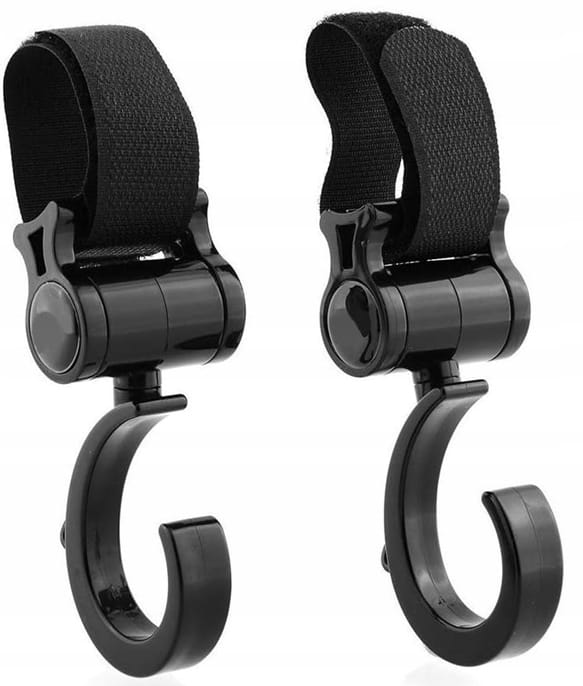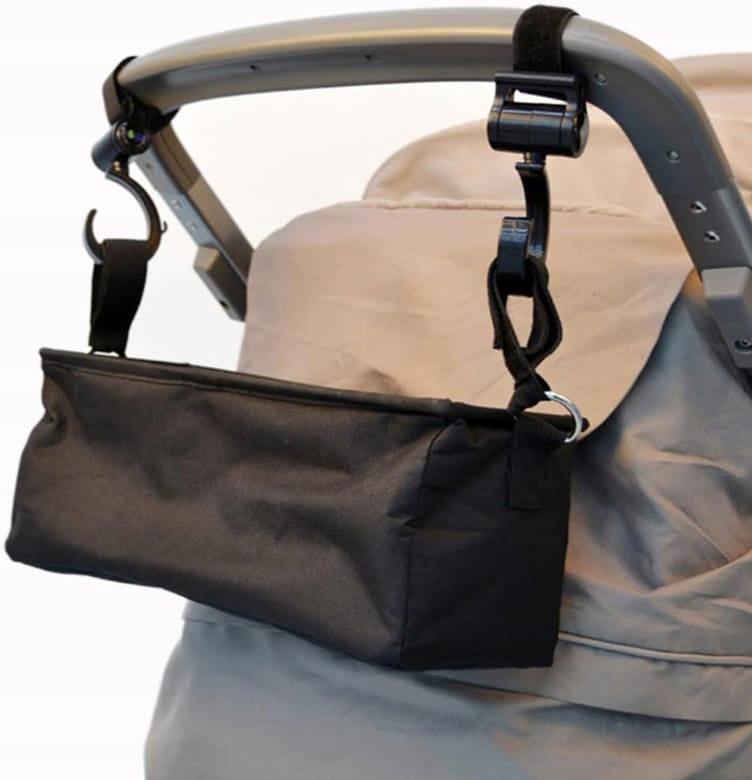 - Regulovateľné držiaky so suchým zipsom na upevnenie tašky alebo iných doplnkov na ráme kočíka.
