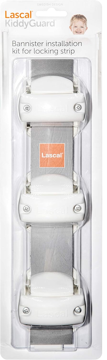 - Praktické uchytenie – Sada 3 úchytov detskej bránky spájajúca Uzatvárací pás Lascal KiddyGuard model Avant, Accent a Assure s uchytením na zábradlie.