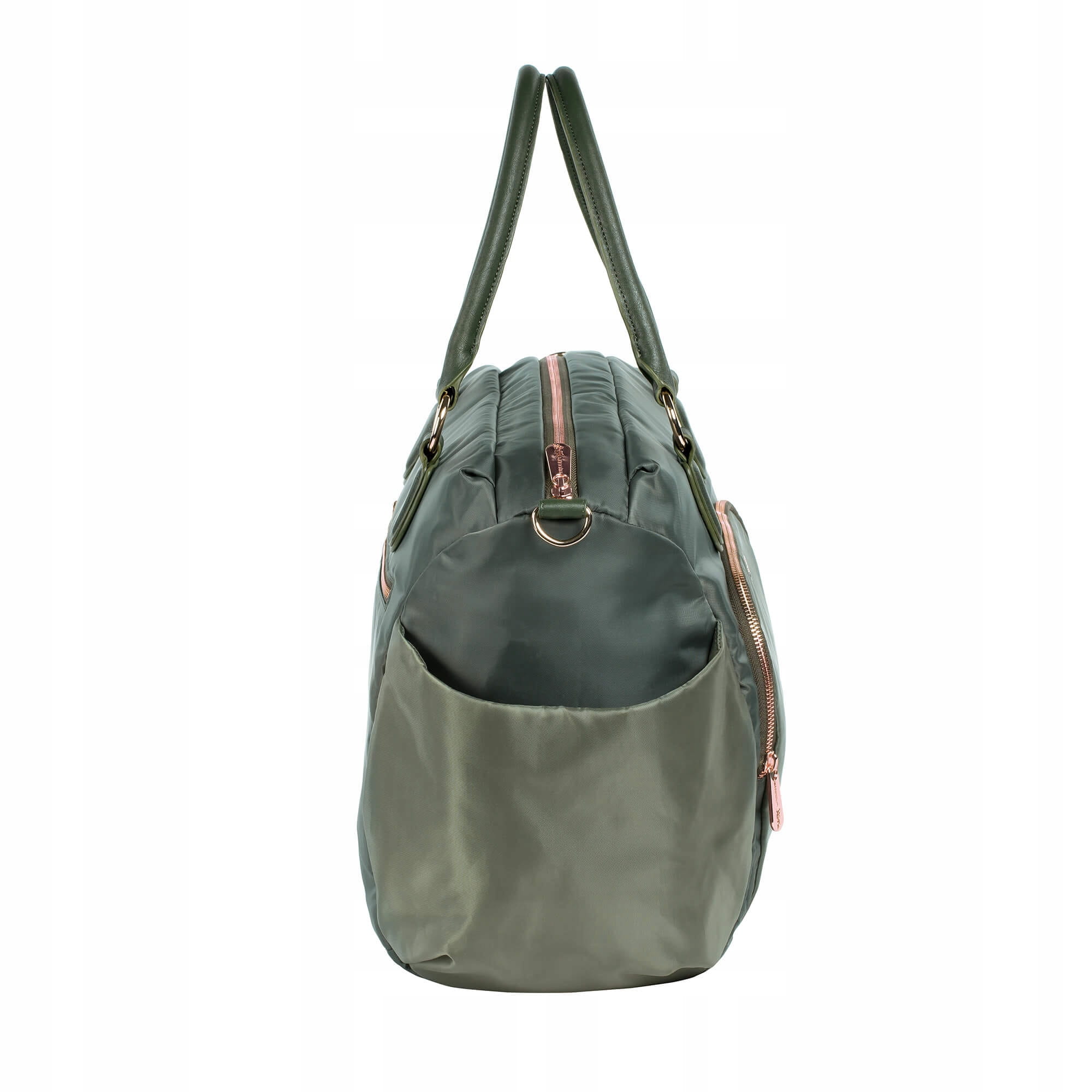 Taška na plienky LASSIG z kolekcie Gold Label je vyrobená zo športového nylonového materiálu, ozdobeného lesklými kovovými detailmi v odtieni ľadového zlata a čierneho kovového striebra. Praktické vonkajšie vrecká sú ideálne na uloženie fľaše s vodou alebo predmetov na dosah ruky. Ďalšie malé predné vrecko na zips poskytuje dodatočný úložný priestor.