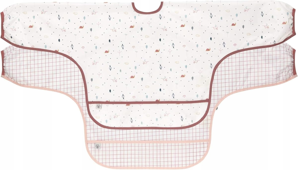 Roztomilá sada dvoch podbradníkov s rukávmi a vreckom od značky Casual zabezpečí, že oblečenie vášho dieťaťa zostane suché a bez škvŕn. Vďaka rukávom poskytujú väčšiu ochranu ako tradičné podbradníky a integrované vrecko zachytí všetky omrvinky, takže nič nesteká dole. Nasadenie ochrany proti rozstreku je veľmi jednoduché a vďaka vodeodolnému materiálu sú podbradníky vhodné aj na mnohé ďalšie aktivity. Detaily: sada 2 podbradníkov s rukávmi a vreckom na omrvinky "Garden Explorer Boys" od Lässig – ideálna ochrana pred rozliatím na oblečení – stačí navliecť na rukávy a zaviazať vzadu – vďaka vodeodolnému materiálu ideálne na rôzne aktivity – podbradník s károvaným motívom a jedným z motívov záhrady – s integrovanou ochranou na zachytávanie. Materiál: 100% polyester. Pokyny na údržbu: --- - prať pri 40 °C – nesušiť v sušičke – nežehlite – odporúčame používať pracie vrecká – nebieliť – nečistiť chemicky