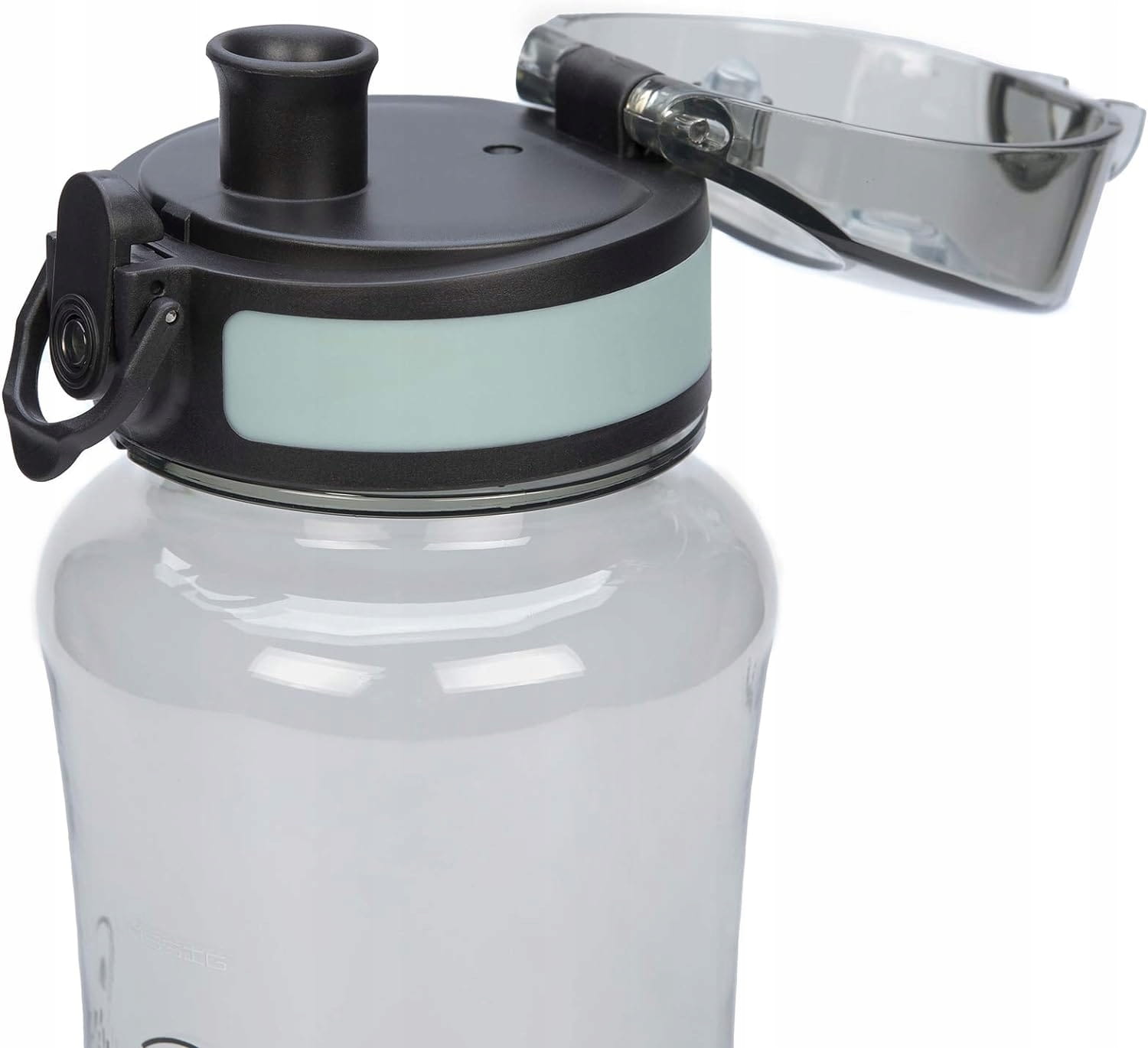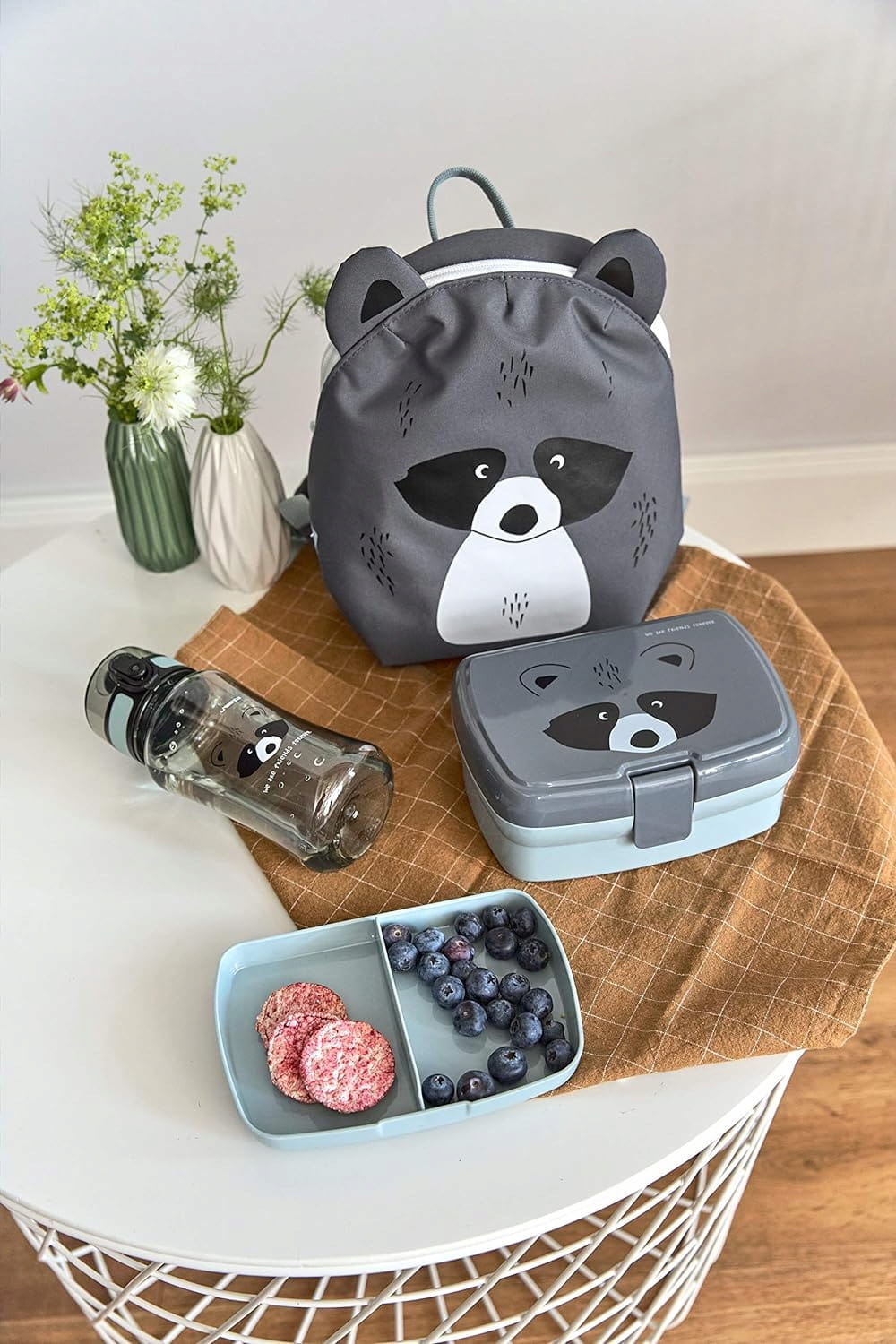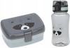 - Box je šikovne rozdelený na hlavnú časť dole, ktorá pojme napr. sendviče, a vyberateľný dvojdielny kontajner na desiatu, napr. nakrájané ovocie alebo oblátky, ktorý možno umiestniť do hornej časti. Box sa dá pohodlne zatvoriť a otvoriť pomocou širokého klipu, ktorý sa sám neotvorí. Priehľadná, svetlosivá fľaša má objem 460 ml a je vyrobená z Tritanu™ – moderného materiálu bez BPA. Viečko so športovým náustkom má integrovaný priehľadný kryt, ktorý sa zatvára na klik a zabraňuje náhodnému rozliatiu nápoja, zaručuje hygienu a má protišmykový silikónový pásik uprostred pre jednoduché otváranie