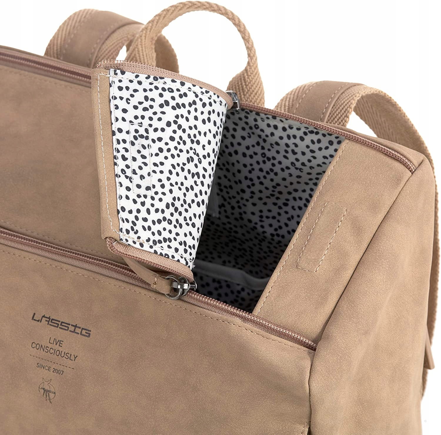 - Vegánsky batoh na plienky LASSIG s velúrovým vzhľadom je absolútny must-have pre rodičov, ktorí uprednostňujú jednoduchosť a diskrétnosť. Moderný, líniový dizajn dopĺňa praktický systém zipsov. Stabilný konštrukčne batoh možno bezpečne odložiť a dvojitý zips vytvára jasné a veľké otvorenie. Ak potrebujete batoh rýchlo zatvoriť, môžete ho jednoducho uzavrieť aj pomocou magnetického uzáveru. Dobre navrhnutý interiér a príslušenstvo dopĺňajú tento batoh na plienky.