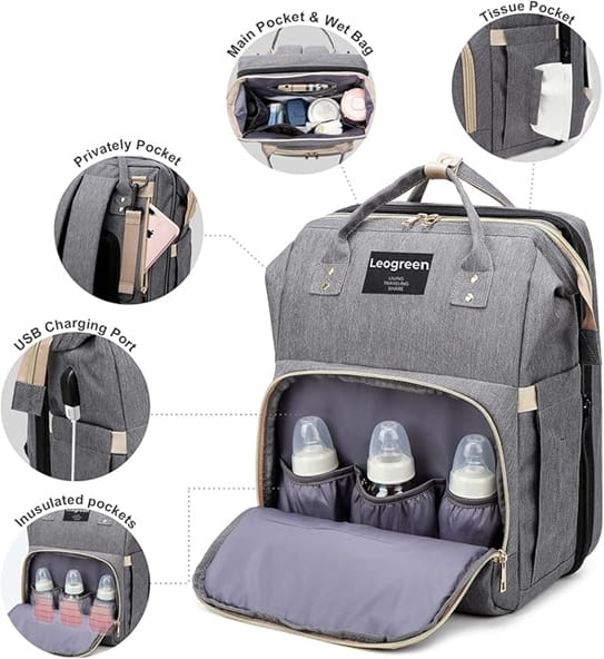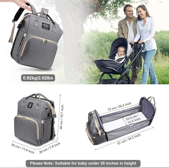 - Univerzálna taška pre bábätká: Tento univerzálny prebaľovací batoh slúži aj ako kabelka a súčasťou je aj prebaľovacia podložka s hrúbkou 4 cm. Batoh sa dá premeniť na cestovnú postieľku, aby ste vytvorili miesto na spanie pre dieťa. Okrem toho je taška elegantná a vhodná na rôzne príležitosti, ako sú cestovanie, výlety, nákupy, krátke výjazdy, skvelá voľba pre mamu aj otca!