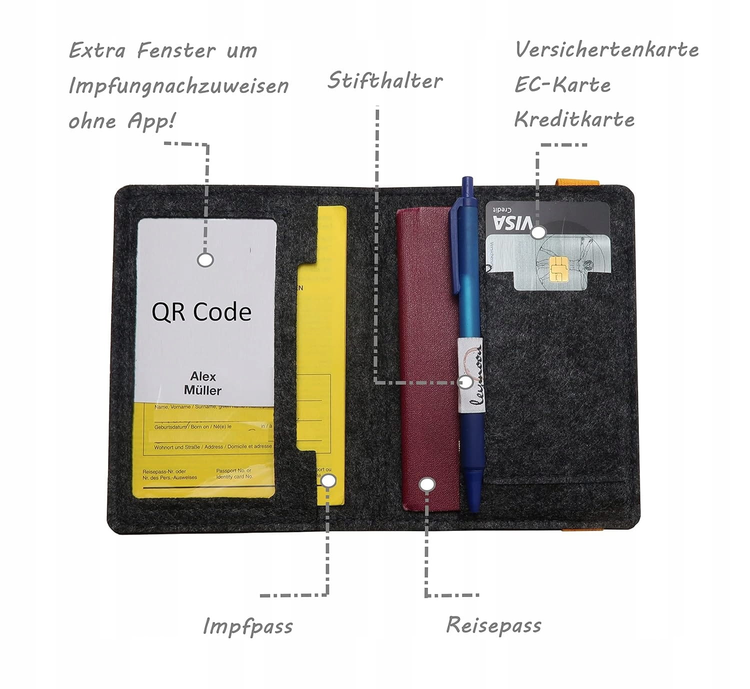 - Všetko na jednom mieste: koniec otravného hľadania očkovacieho preukazu, QR kódu, receptov, zdravotných kariet a pod. Odteraz všetko na jednom mieste! Kompaktný obal na očkovací preukaz ponúka množstvo priestoru na uloženie s dokonale prispôsobenými priehradkami na akékoľvek dokumenty.
