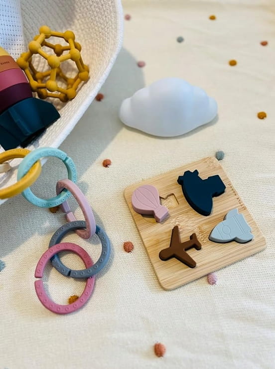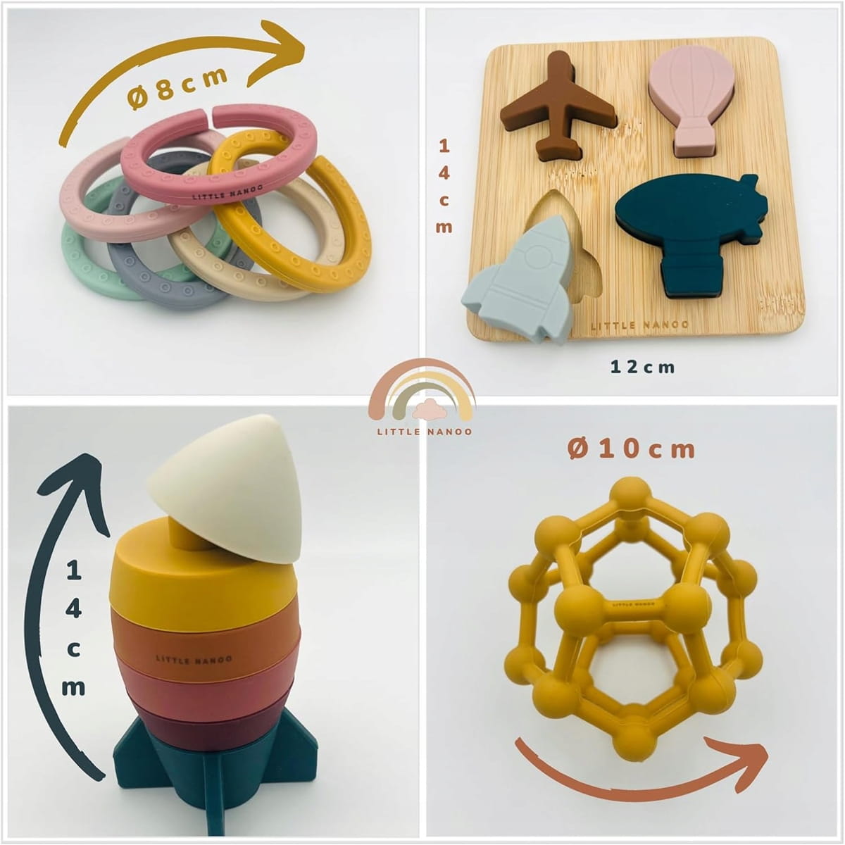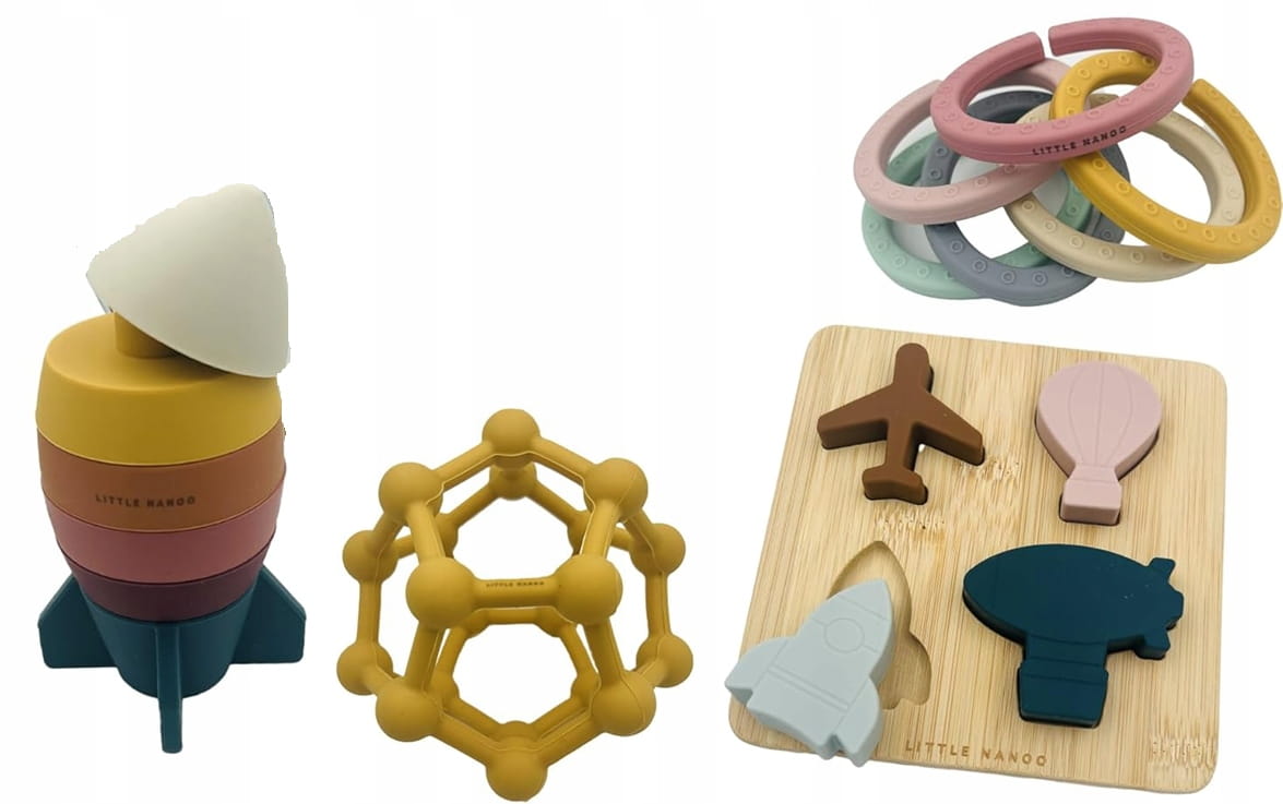 LITTLE NANOO sada silikónových senzorických hračiek 18 kusov 6 m+