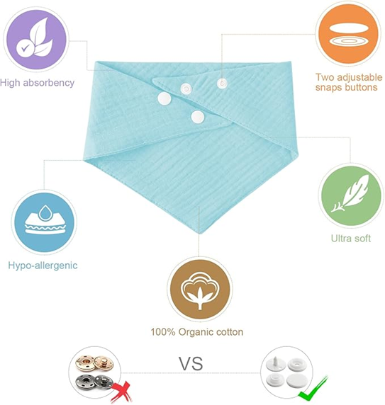Zabezpečte svojmu bábätku sucho a pohodlie po celý deň. Slintáčiky-bandany z mäkkej bavlny chránia citlivú pokožku, rýchlo absorbujú sliny a vyzerajú štýlovo ku každému outfitu. Ideálne na prerezávanie zúbkov, kŕmenie a každodenné prechádzky.