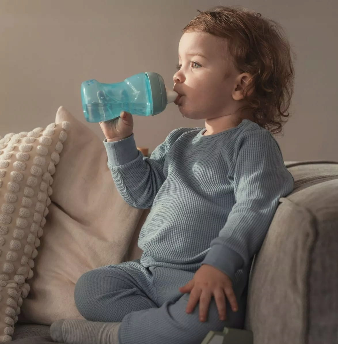 - Vďaka tvrdému náustku hrnček uľahčuje prechod na pitie z pohára.