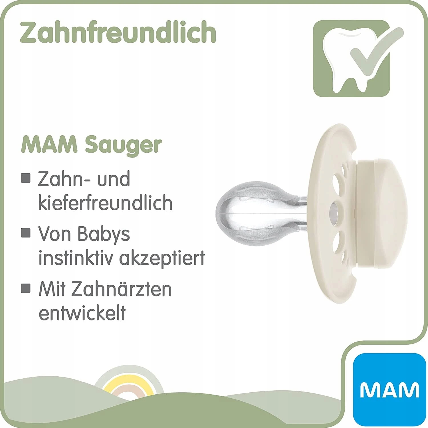 - Cumlíky MAM sú výsledkom výnimočnej tímovej práce MAM s pediatrami, zubármi a ortodontmi. Veľké otvory zabezpečujú prívod dostatočného množstva vzduchu, čo v kombinácii s tvarovaným štítkom spôsobuje, že cumlík MAM Air nedráždi pokožku dieťaťa. Výskumy potvrdzujú, že 94% detí okamžite akceptuje hodvábny silikón MAM vďaka jeho mäkkému povrchu.