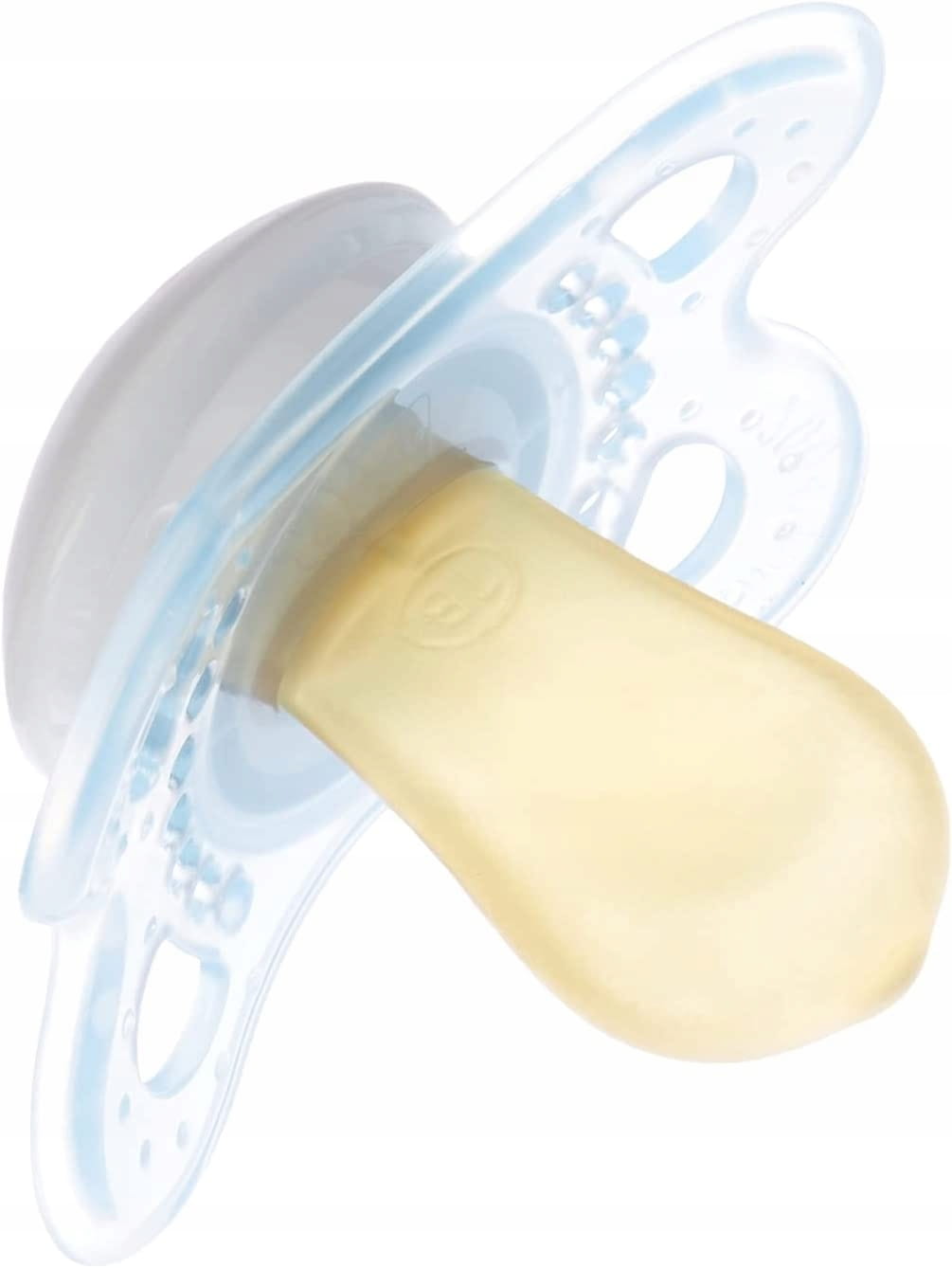 - Jemný k pokožke - Veľké otvory, výstupky a zaoblený štít - ktorý nezanecháva stopy na tvári - robia cumlík pre bábätká jemným a zabraňujú treniu