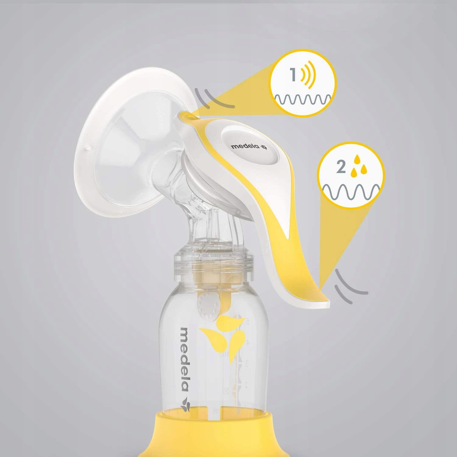 Pre plné využitie funkčnosti rukoväte najskôr stláčajte kratšiu časť rukoväte, čím vytvoríte väčší podtlak, podobne ako hladné dieťa. Keď začne mlieko tiecť, začnite stláčať dlhšiu časť rukoväte – sacie pohyby budú pomalšie, čo umožní odsatie väčšiny mlieka z prsníka.