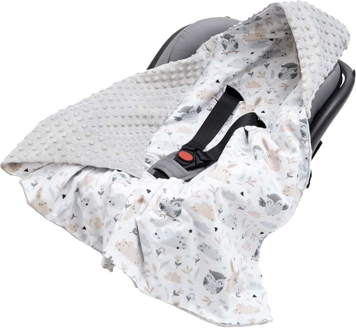 - Multifunkčná deka, ktorá je vhodná do väčšiny autosedačiek a nosičov pre bábätká, obopína dieťa a poskytuje pohodlie a bezpečnosť. Vďaka veľkej kapucni chráni dieťa pred chladom a vetrom. Ideálna na cestovanie, prechádzky, doma aj v aute. Optimálna veľkosť: 85x85cm zaručuje dlhé používanie.