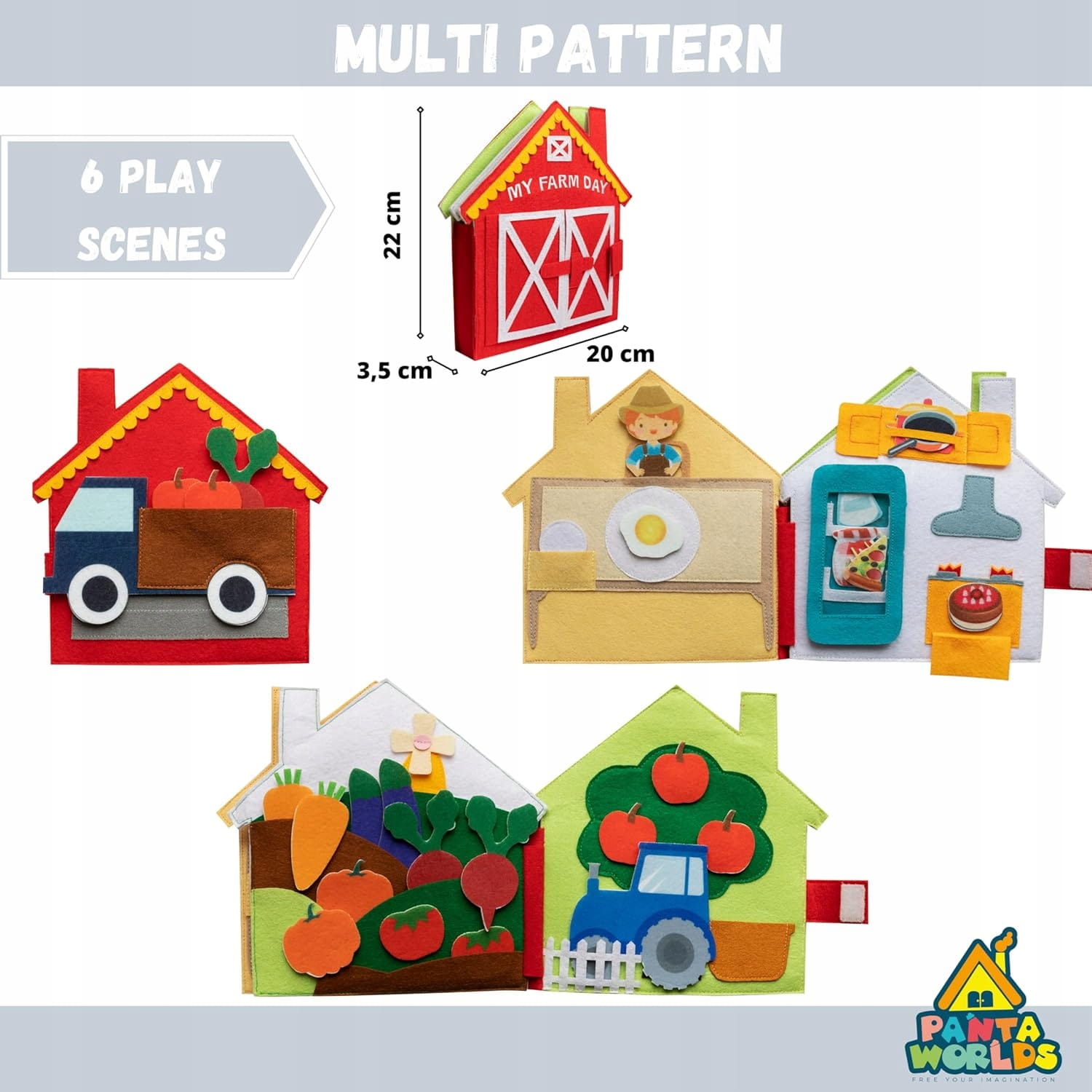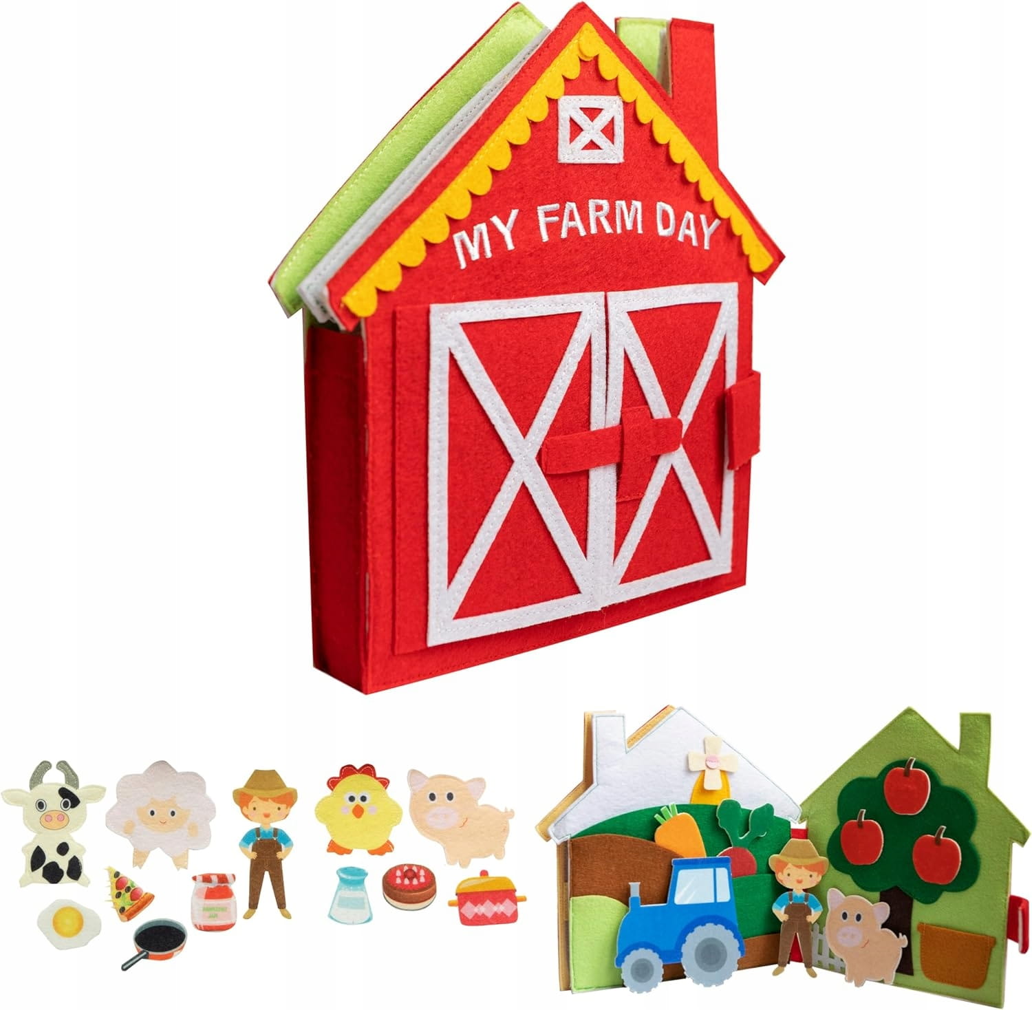 - Vysokokvalitné materiály: Quiet Book je vyrobená s veľkým dôrazom na detaily. Filc zaručuje trvácnosť, švy sú pevné a figúrky a vyberateľné predmety majú optimálnu veľkosť a hrúbku.
