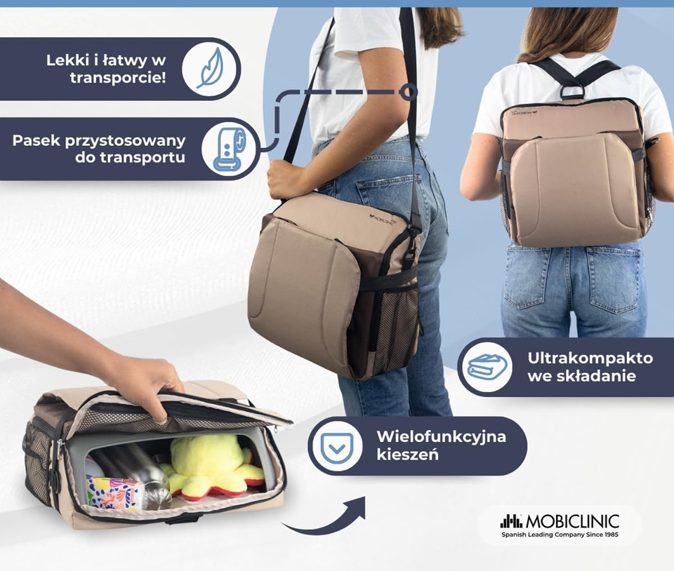 - ✔ MULTIFUNKČNOSŤ: Umožňuje prepravu v priehradke na potreby ako plienky, fľaše, obrúsky, peňaženka, mobilný telefón a zároveň slúži ako sedadlo pre dieťa, pričom ponúka možnosť prístupu k nim, keď dieťa sedí