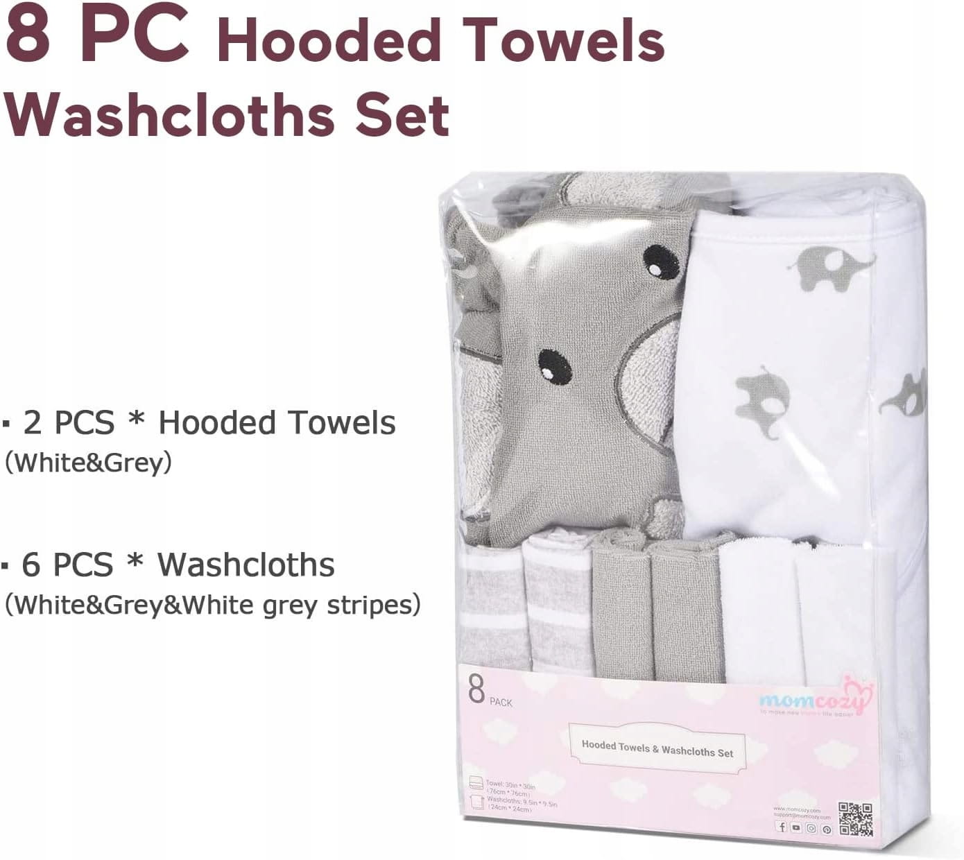- Čo dostanete: 8-dielna sada detských uterákov s kapucňou a umývacích handričiek spolu s kúpeľňovými doplnkami pre bábätká: 6 čistiacich uterákov pre bábätká (24,5 x 24,5 cm) a 2 veľké detské uteráky s kapucňou (76,2 x 76,2 cm), ktoré splnia vaše každodenné potreby. Menšie detské umývacie handričky môžu byť použité ako kúpeľňové uteráky, uteráky, potítka, handričky pre bábätká a podobne.