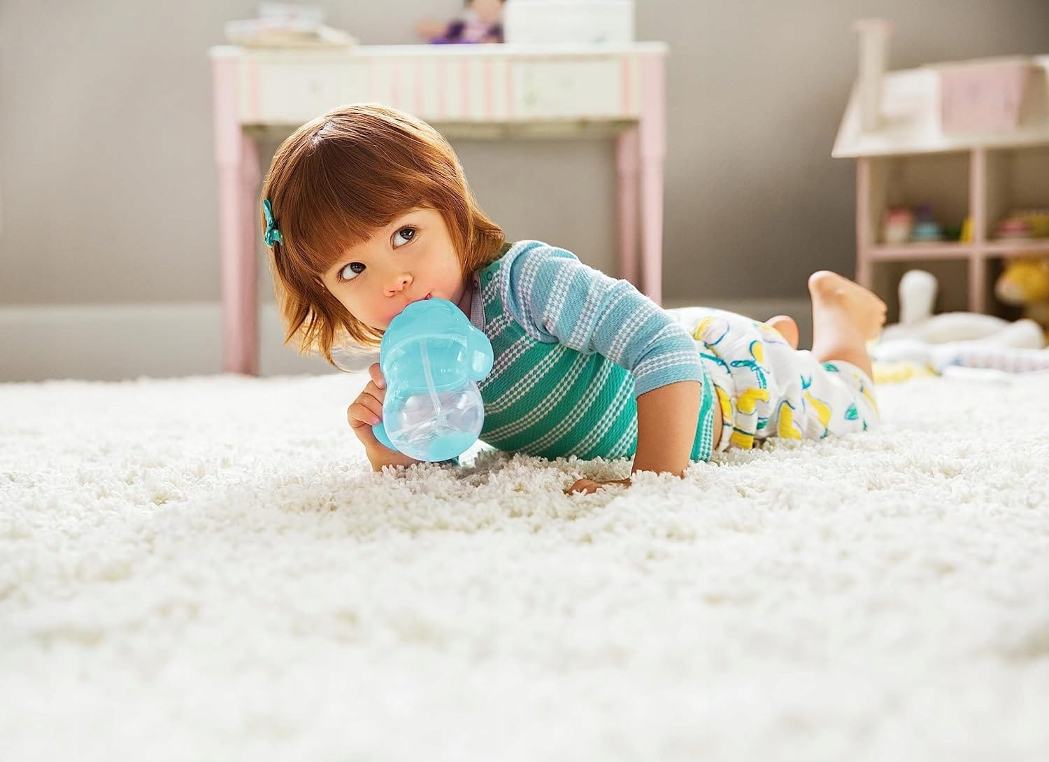- NEPRETEKAJÚCI POHÁRIK: Tesný pohárik pre bábätká a deti od 6 mesiacov má flexibilnú, zaťaženú slamku; Je jemná k ďasnám a umožňuje dieťaťu držať pohárik pod akýmkoľvek uhlom