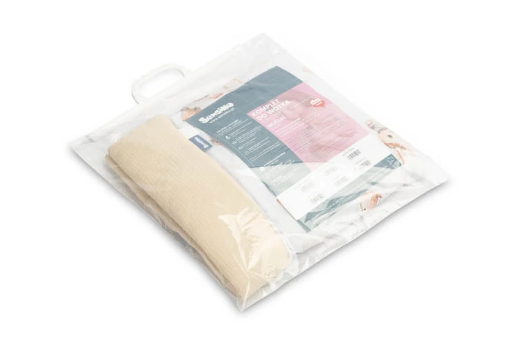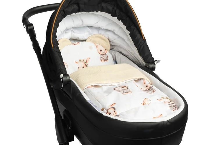 Súprava obsahuje vankúš a deku vyrobené z príjemného mušelínu a bavlny. Súprava je ideálna do kočíka, postieľky alebo ako mäkká podložka pre bábätko. Samotný vankúš môže slúžiť ako maznáčik. Súprava je vyrobená z dvoch materiálov – vnútorná strana je 100% bavlna, vonkajšia vrstva je mäkký mušelín.