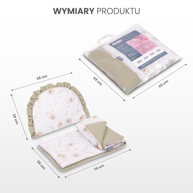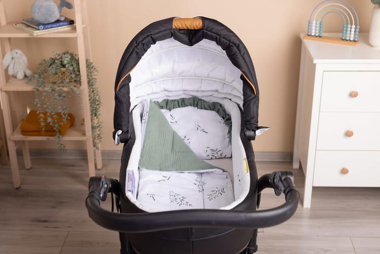 Súprava do kočíka – pozostávajúca z vankúša a deky – je výnimočná sada navrhnutá s ohľadom na maximálne pohodlie vášho dieťaťa. Obojstranný dizajn robí súpravu praktickou aj elegantnou a jej univerzálnosť z nej robí ideálny darček pre novorodenca. Kombinácia bavlny a mušelínu poskytuje nielen pohodlie, ale aj odolnosť a štýlový vzhľad.