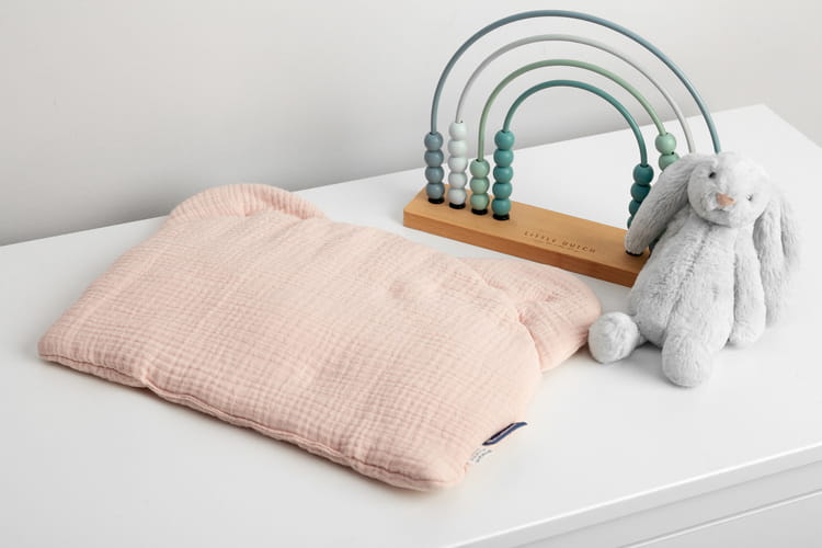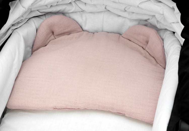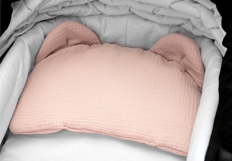 z jemného mušelínu a výplň tvorí antialergické silikónové vlákno. Tieto materiály nedráždia citlivú detskú pokožku. Vankúš je plochý, ideálny aj pre novorodencov.