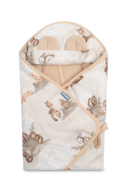 Mušelínový zavinovačka bola vytvorená s ohľadom na najmenšie deti. Je pohodlná a veľmi praktická počas cestovania. Je to alternatíva k teplému detskému oblečeniu. Vďaka otvorom na 3-bodové pásy je veľmi funkčná – nie je potrebné odpínať pásy, aby ste odhalili dieťa v nosiči. Zavinovačka má nastaviteľnú kapucňu. Je ušitá zo 100% mušelínu a bavlny.