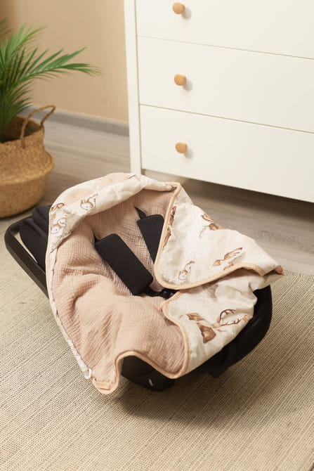 • Môže slúžiť aj ako deka do kočíka alebo postieľky