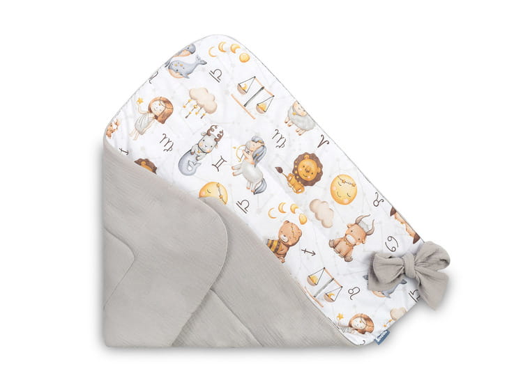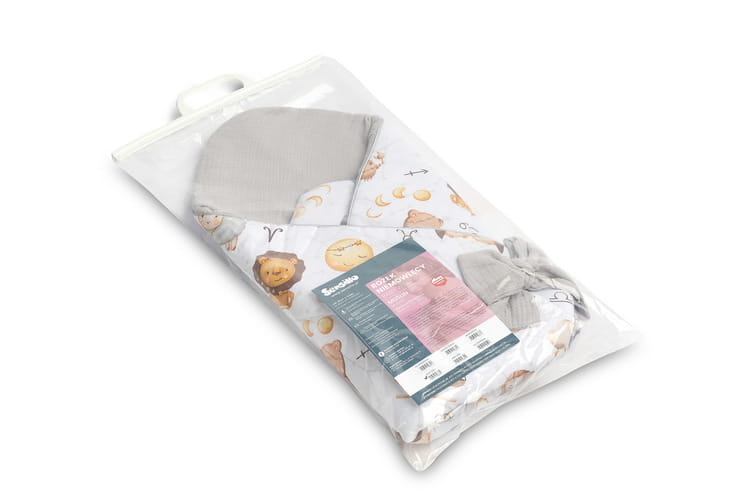 Jednostranný mušelínový zavinovačka pre bábätká bola vytvorená s ohľadom na novorodencov a dojčatá. Zapínanie na suchý zips umožňuje pohodlné držanie dieťaťa počas kŕmenia a uspávania. Po rozložení môže byť zavinovačka úspešne použitá ako prikrývka do postieľky alebo detského kočíka. Môže tiež slúžiť ako hracia podložka. Vyrobená je z bavlnených tkanín: potlačenej bavlny a mušelínu. Výplň zavinovačky tvorí antialergické nadýchané silikónové vlákno. Vysokú kvalitu spracovania podčiarkuje estetická lemovka.