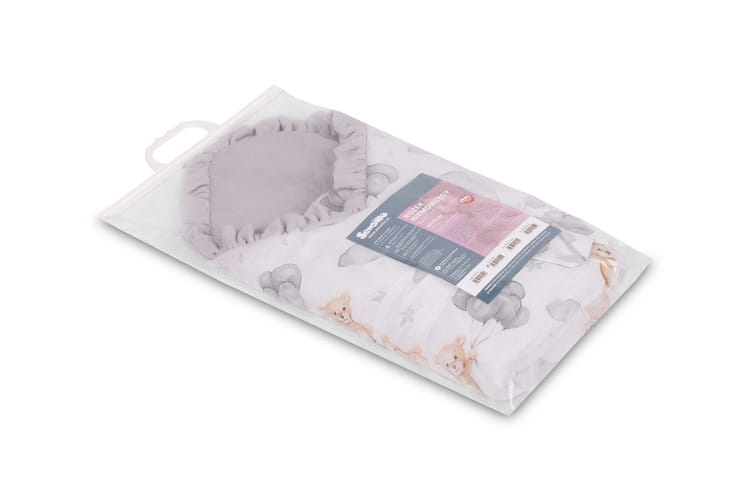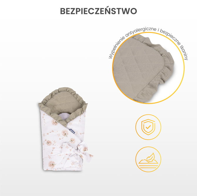 Zavinovačka je vyrobená z najkvalitnejších, bezpečných materiálov, ktoré sú jemné k citlivej detskej pokožke. Antialergická výplň chráni pred alergiami a podráždením, zabezpečuje pokojný spánok a bezpečnosť každý deň. Jednoduché zapínanie na stuhu umožňuje reguláciu a prispôsobenie individuálnym potrebám dieťaťa.