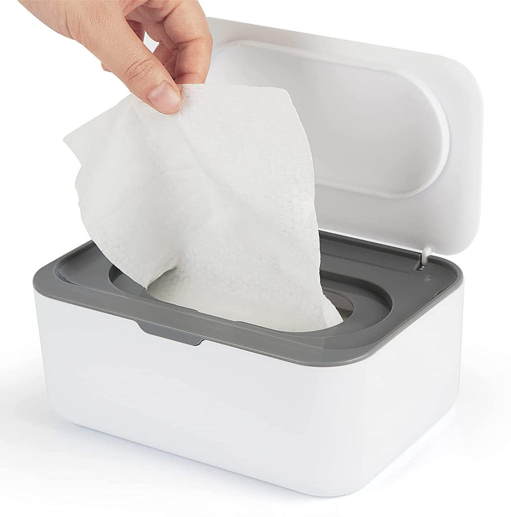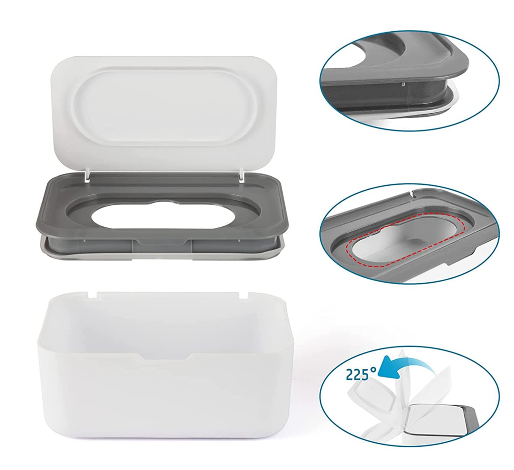 - Uzamykateľné veko a silikónové tesnenie zabezpečujú, že obrúsky nevysychajú.