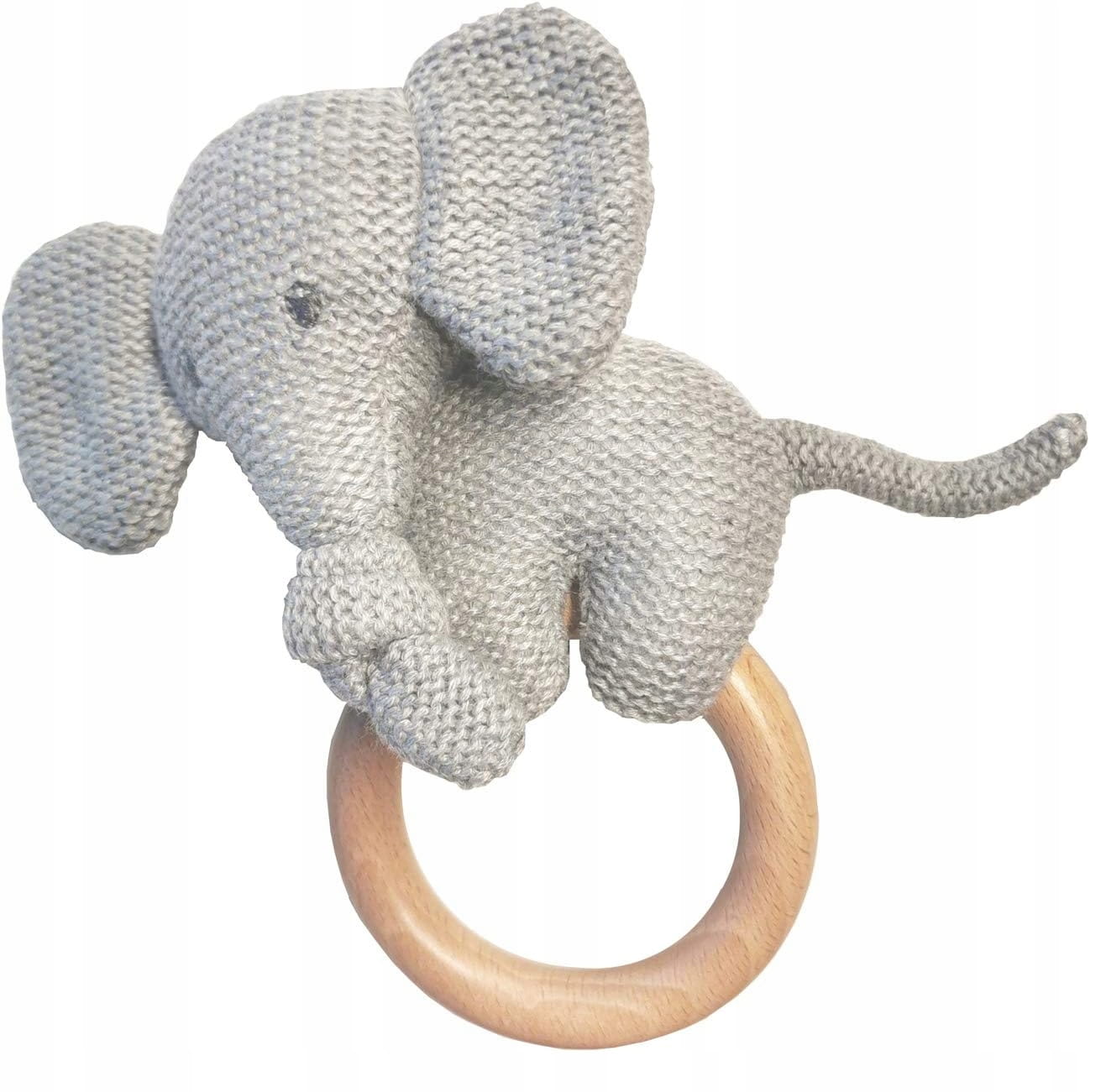 NATTOU hryzátko z bavlny a dreva s hrkálkou TEMBO-RABON 15 cm