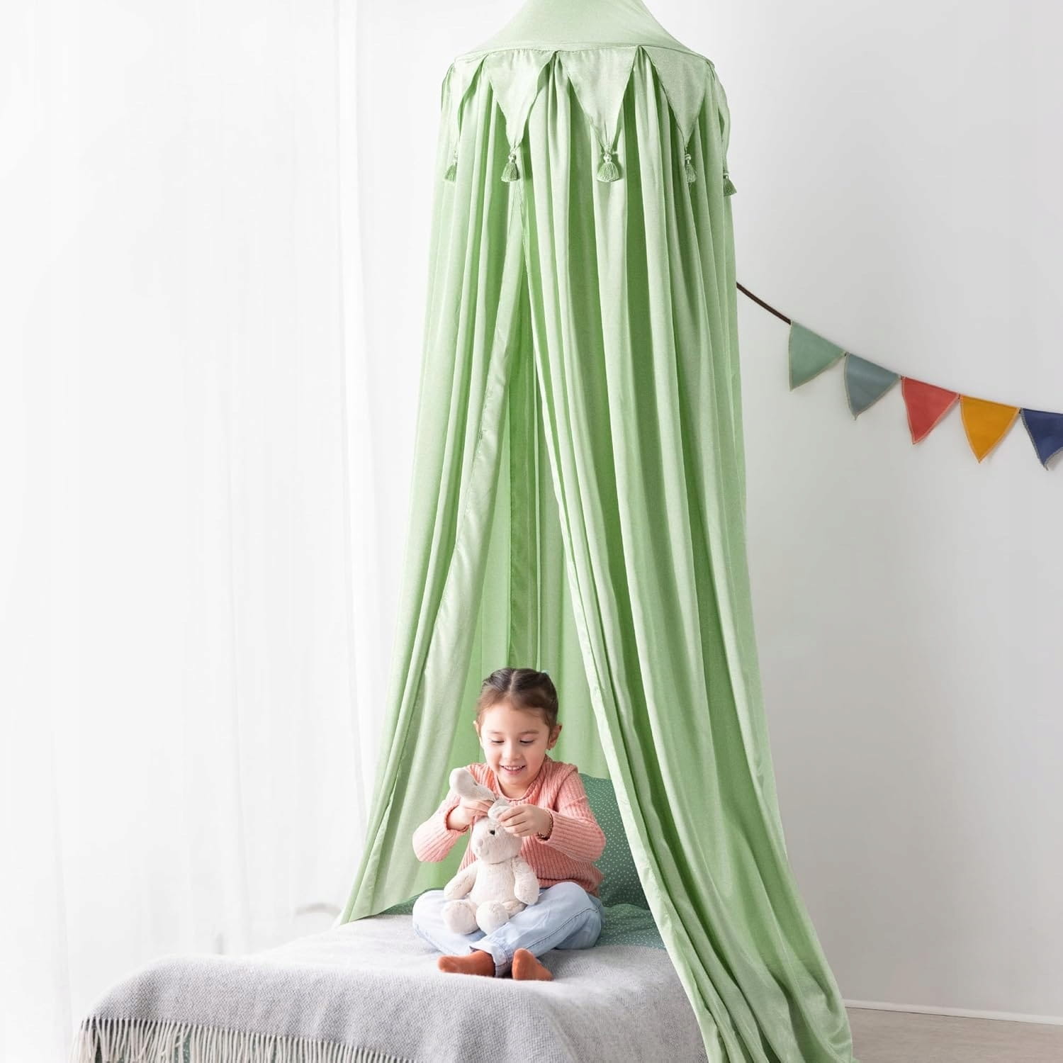 - Útulný úkryt: Naše strechy sú vhodné nielen na postele! Môžu byť použité na vytvorenie visiaceho stanu kdekoľvek v izbe, poskytujú súkromné miesto na schovanie a čítanie alebo ako rekvizita pri hre na princeznú. Deti môžu pridať aj vlastné dekorácie.