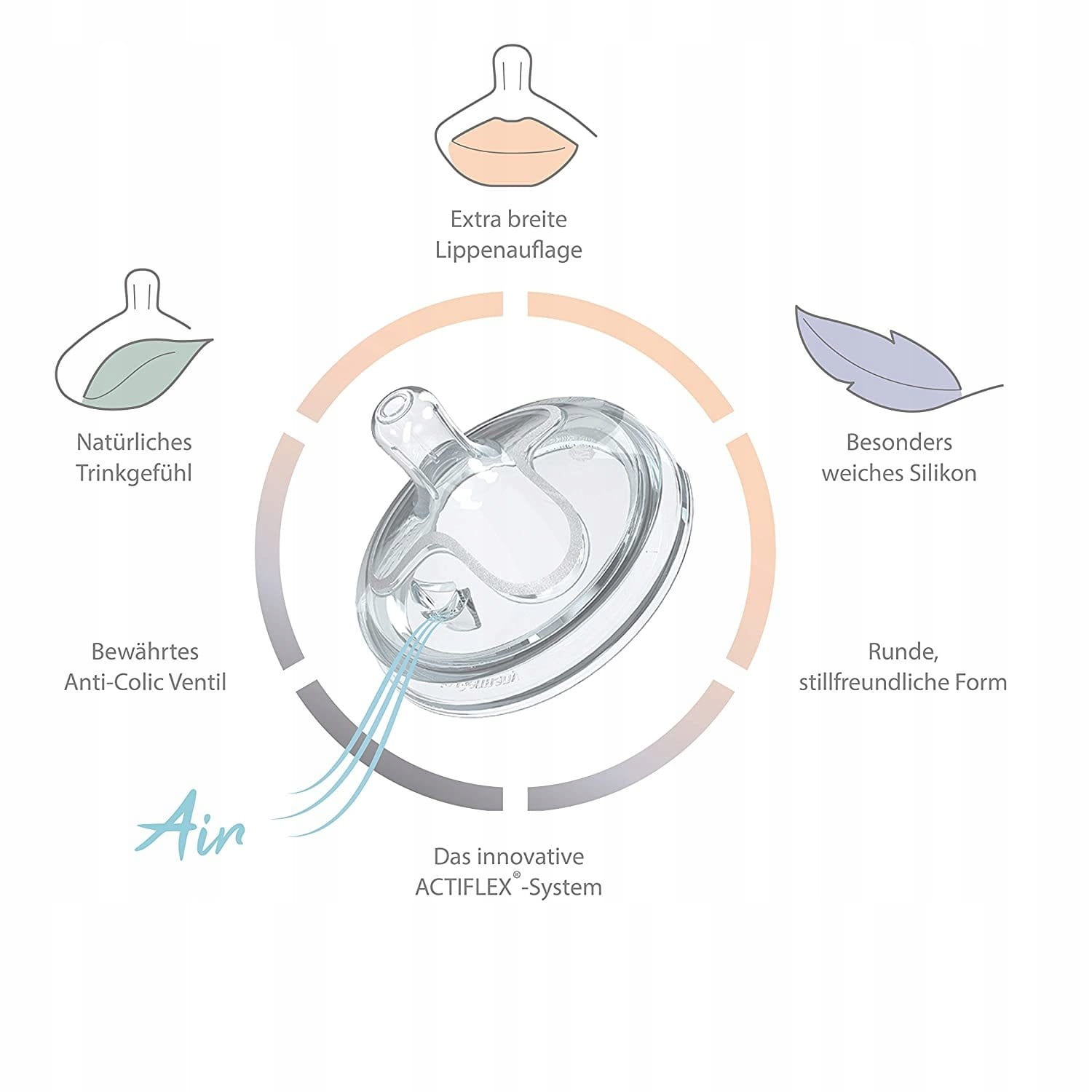 - Overený antikolikový ventil zabraňuje kolike a systém ACTIFLEX zabezpečuje plynulý tok nápoja a zabraňuje zmršťovaniu cumlíka.