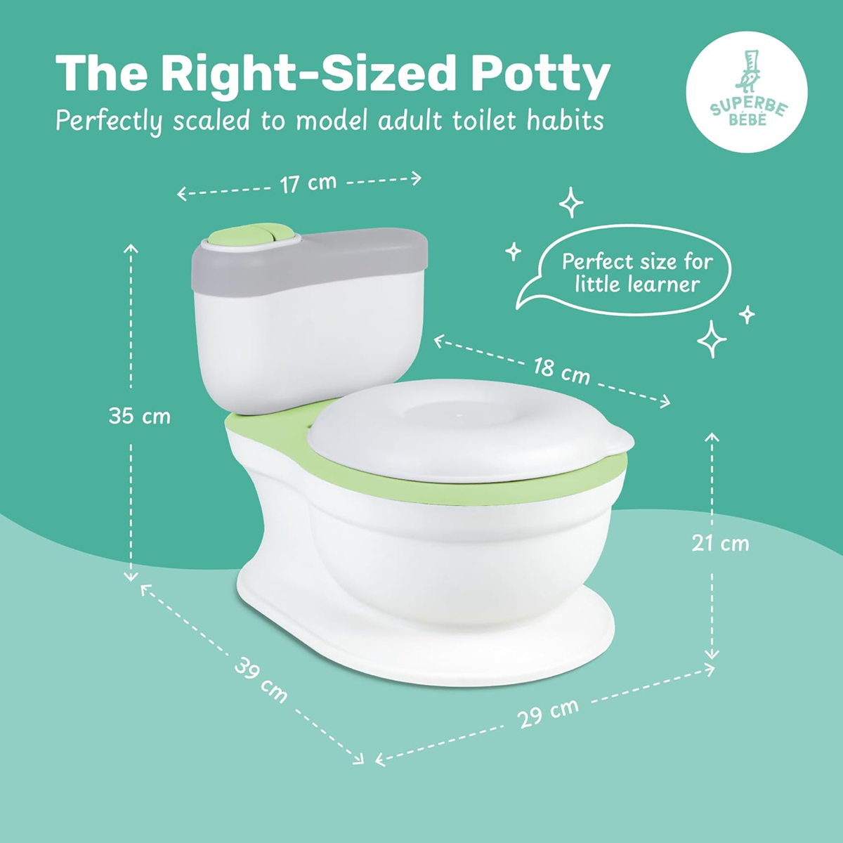 - Táto detská toaleta je replikou 1:1 „toalety pre dospelých“, deti sa cítia skvele. Povzbudzuje deti k napodobňovaniu