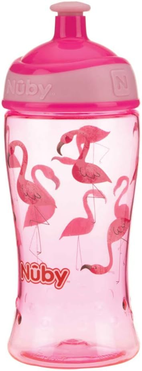 NUBY Pop-Up Sipper tritanová fľaša pohárik netečúci 360 ml 3 roky+ FLAMING