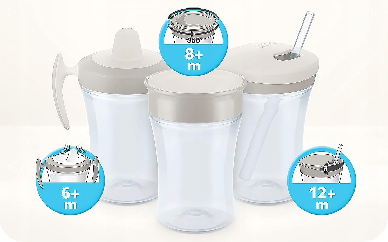 - Pohárik umožňuje jednoduchý prechod od sania k pitiu z prvého pohárika.