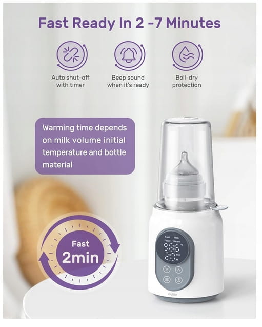 ZVUKOVÉ UPOZORNENIA A OCHRANA PRED VYPNUTÍM NAPÁJANIA: Náš ohrievač na mlieko vydá 5-krát zvukový signál po ukončení ohrievania. Nemusíte neustále kontrolovať čas, stačí ho vybrať, keď počujete zvukový signál. Ak sa voda vyparí, automaticky sa vypne, aby bolo používanie bezpečnejšie pre zaneprázdnené mamy.
