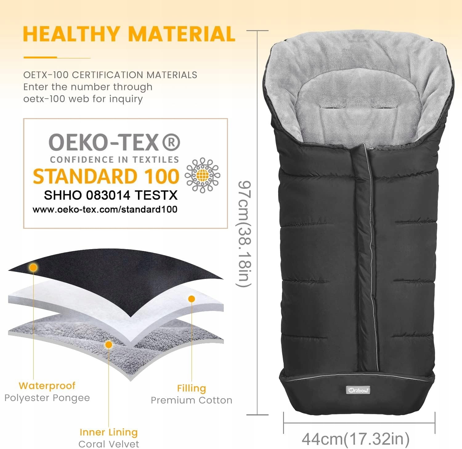 - Prémiová kvalita a veľký rozmer: Vyrobené z vysoko kvalitnej vodeodolnej a snehovzdornej tkaniny Pongee s príjemnou bavlnenou podšívkou a podšívkou z koralového flísu (certifikát OEKO-TEX 100 Authentication), ktorá uľahčuje čistenie nečistôt a udržiava výnimočné teplo. Orzbow teplý poťah na kočík s rozmerom 97 x 45 cm umožňuje vášmu dieťaťu pohodlne spať a voľne sa pohybovať v kočíku alebo si užívať vonkajší svet aj počas chladných zimných dní.