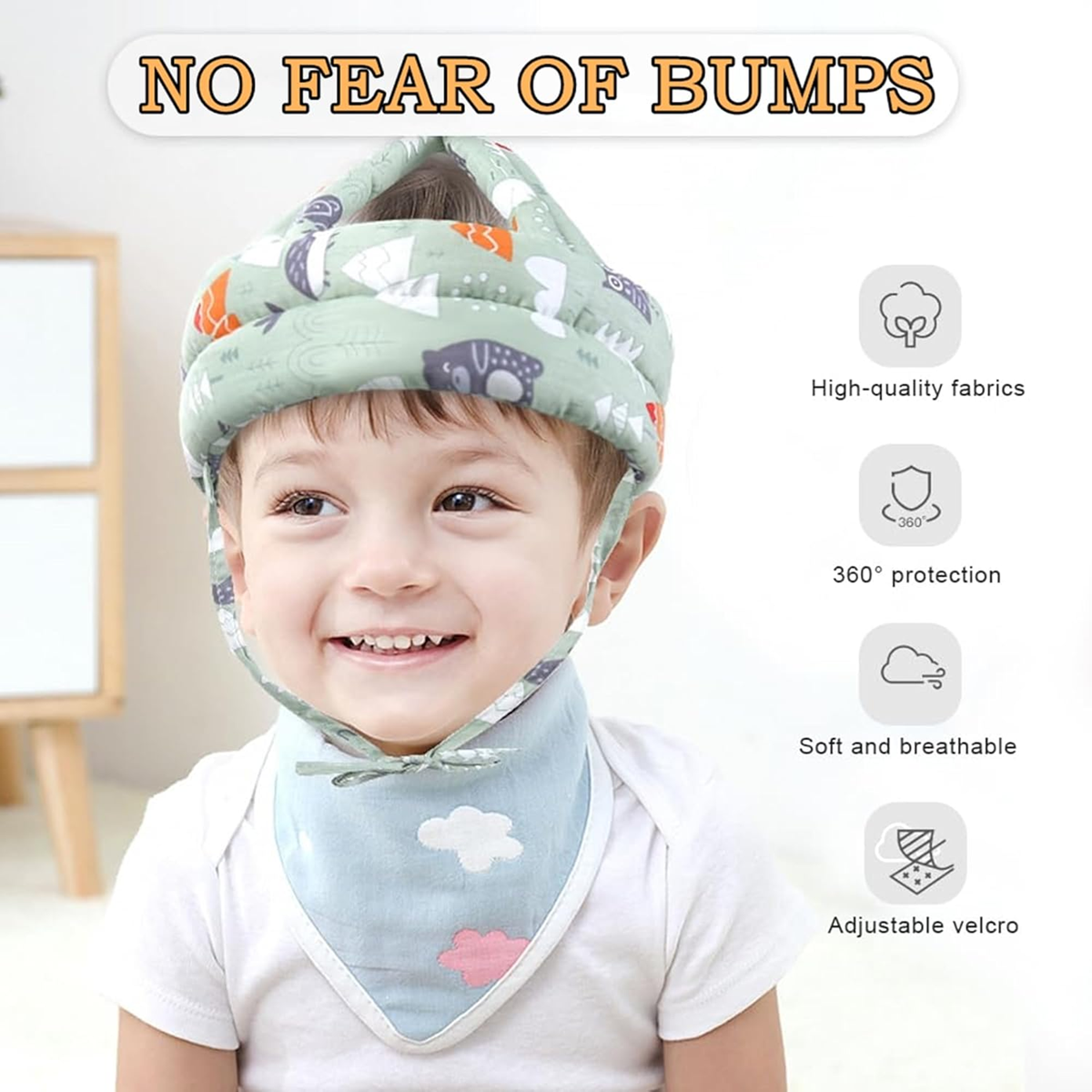 - Úplná ochrana 360° prilba pre bábätká: mimoriadne tlmí nárazy a je odolná voči úderom, táto ochranná prilba zabraňuje modrinám, odreninám a zraneniam spôsobeným pádom u detí