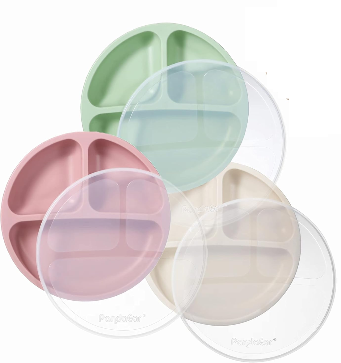 PANDAEAR sada trojdielnych tanierikov s prísavkou a viečkom x3