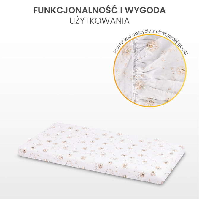 Vďaka elastickej gume všitej po okrajoch plachta presne prilieha na matrac s rozmermi 120x60 cm, chráni dieťa pred zamotaným materiálom. Je to praktické riešenie, ktoré zabezpečuje pohodlné používanie, ako aj rýchle nasadenie a zloženie plachty.