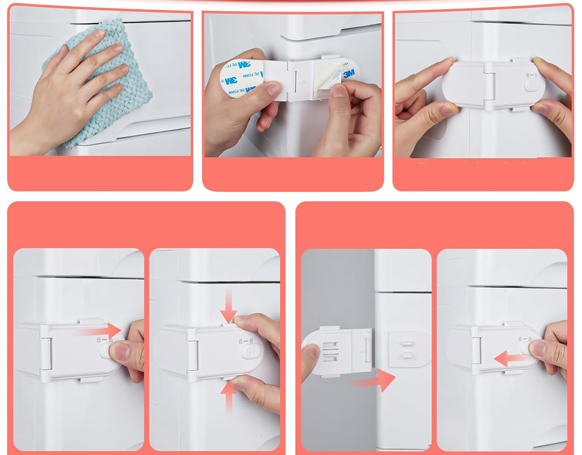 - Zabezpečenie zabraňuje otvoreniu skrinky alebo zásuvky dieťaťom.