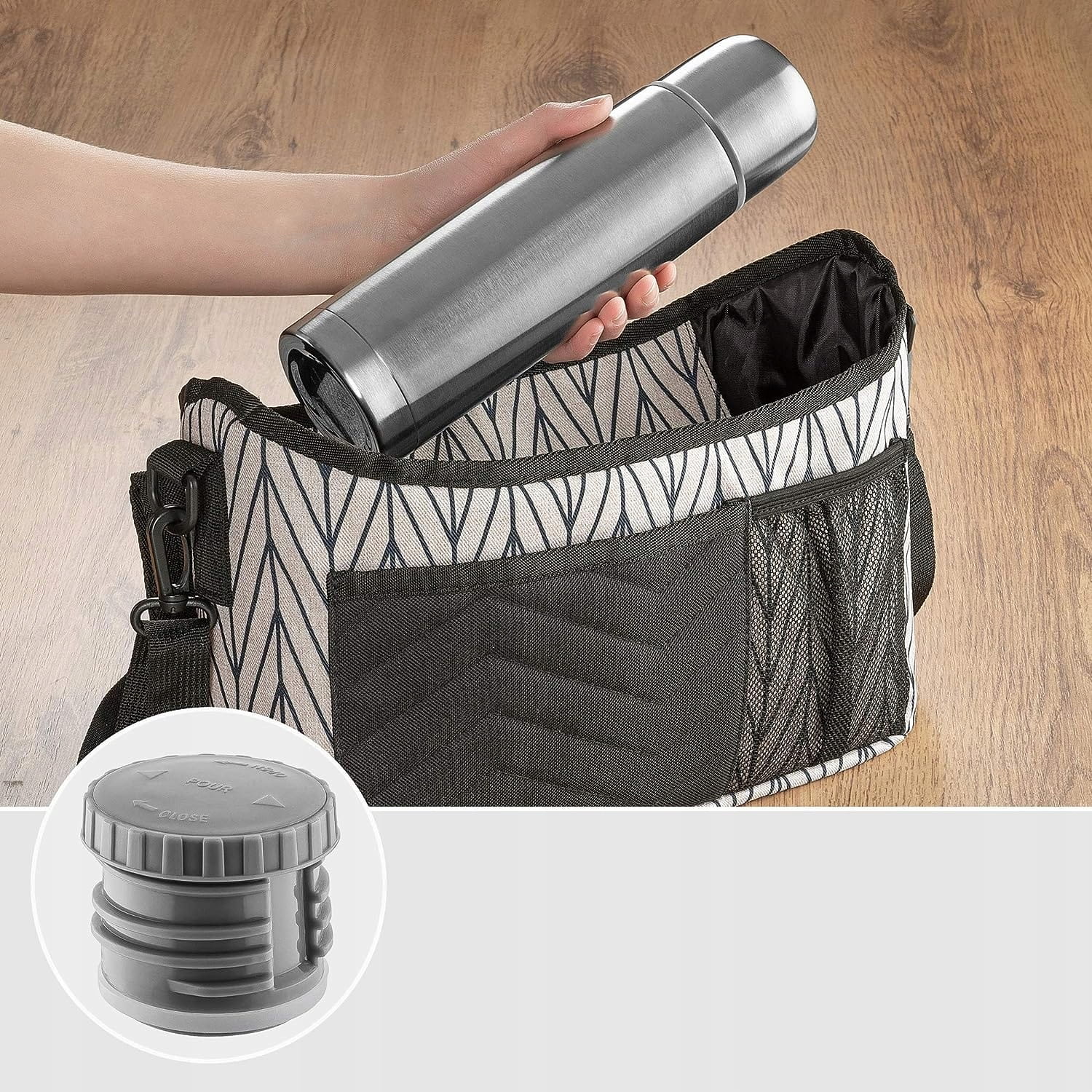 - Termoska vhodná na prepravu horúcich alebo studených nápojov, ideálna na prípravu jedla na cestách.