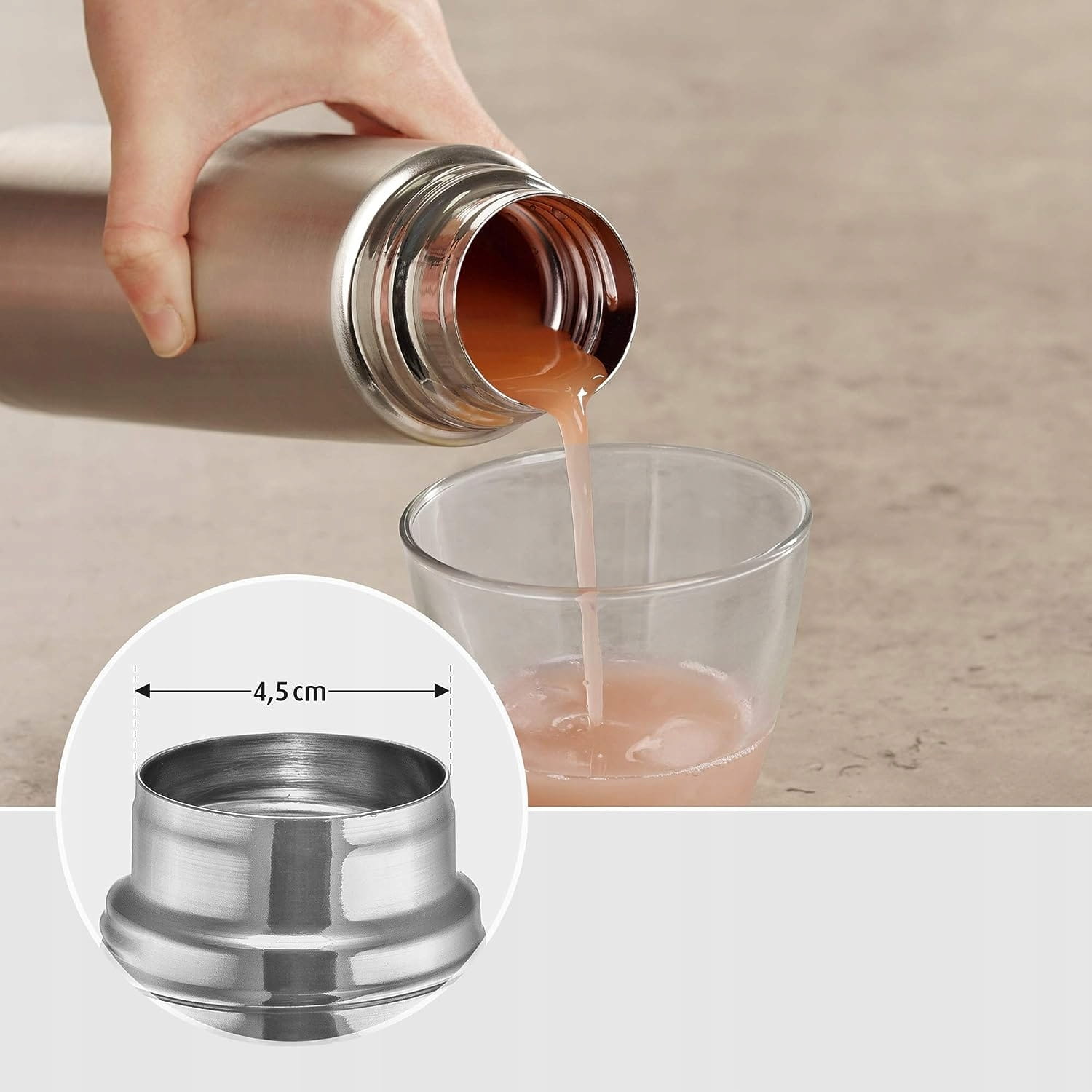- Praktické uzáver/viečko slúžiace zároveň ako pohárik.