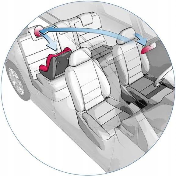 - Zrkadlo umožňuje rýchlo skontrolovať dieťa na zadnom sedadle. Vidno nielen hlavu dieťaťa, ale aj či je zapnutý bezpečnostný pás.