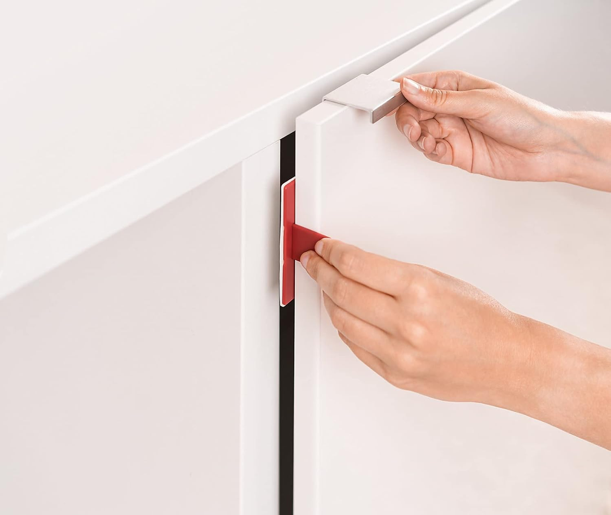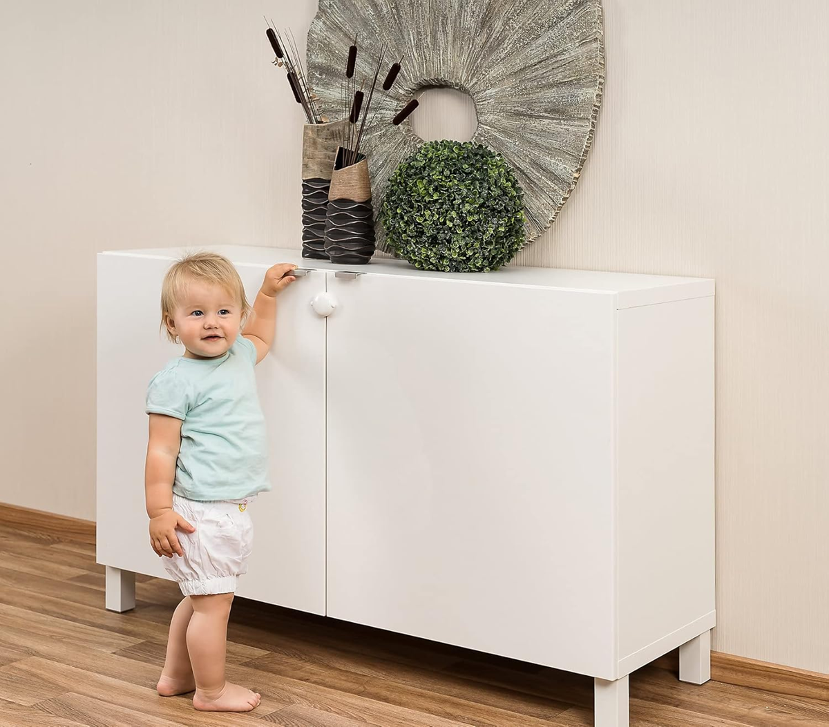 - Treba sa uistiť, že medzera medzi dvierkami skrinky nepresahuje 3 cm. Ak je medzera väčšia ako 3 cm, dieťa môže byť schopné dosiahnuť dovnútra samostatne.