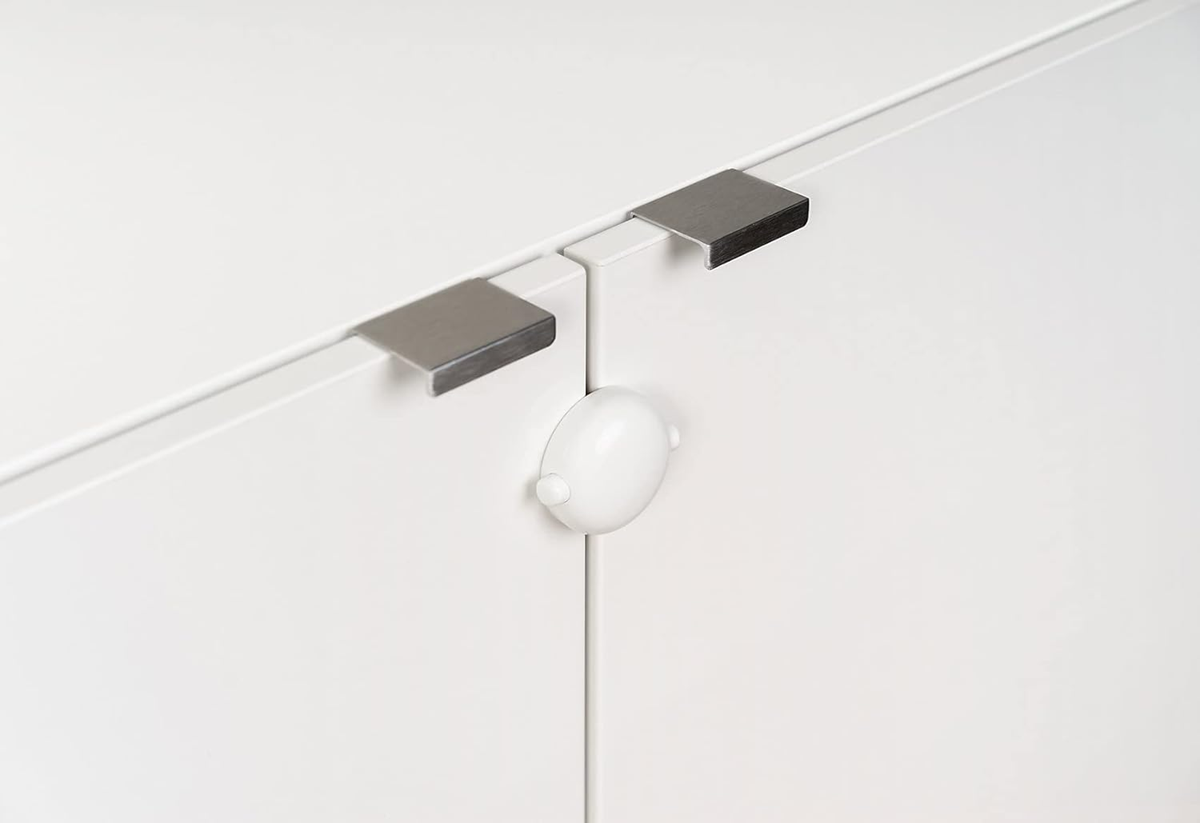 - Zabezpečenie chráni deti pred prístupom do skriniek s dvojkrídlovými dvierkami.